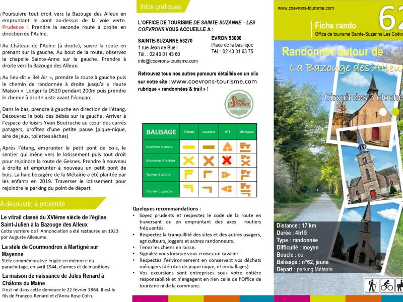 Elles traversent toute la commune et vous feront découvrir des panoramas sur le bocage mayennais. Pour suivre la randonnée, des dépliants sont à disposition à la Mairie ou il suffit de suivre les pancartes jaunes circuits n°60 ou 61.